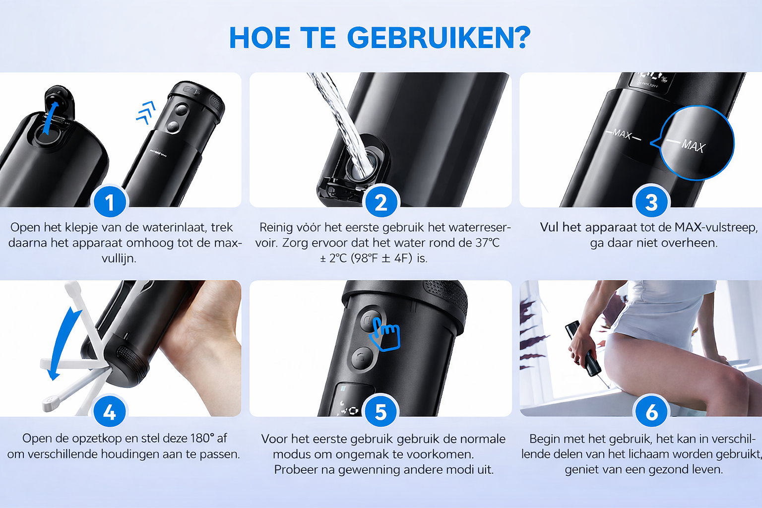 Tijdens je menstruatie zorgt de zachte waterstraal voor een fris en schoon gevoel zonder irritatie.